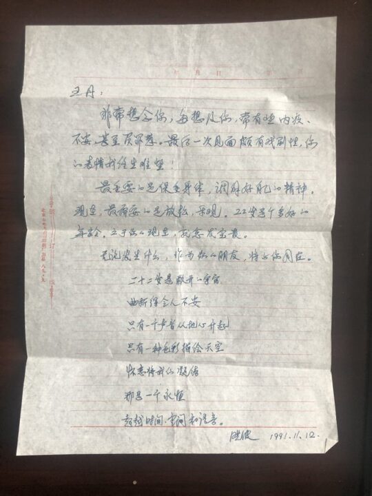 刘晓波:给王丹的信(1991年11月12日)